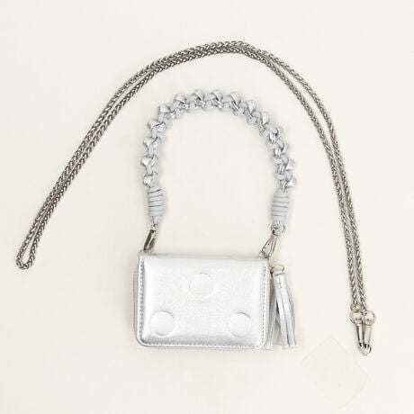 ドット型押しを施した牛革を使用したジャバラチャームウォレットショルダー。
