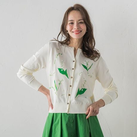 繊細で華やかなスズランのオリジナル刺繍をあしらったカーディガン。