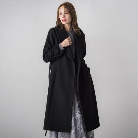 すっきりとした縦ラインが印象的なロングコート。