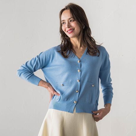 繊細なラメが上品に輝く、大人のためのVネックカーディガン。