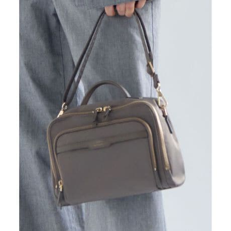 カメラバッグを思わせるスタイリッシュなデザインが魅力の、コンパクトな2WAYショルダーバッグ。軽くて丈夫なナイロン素材を使用しており、デイリーユースに最適です。絶妙なサイズ感で、お財布やスマートフォン、メイクポーチなど、日常の必需品をスマートに収納できます。バッグの前面には、すぐに取り出したい小物の収納に便利なファスナーポケットを配し、機能性と整理のしやすさを両立させました。トップには手持ちしやすいハンドルが付いており、付属のショルダーストラップは長さの調節が可能です。手持ちのハンドバッグとしてはもちろん、肩掛けや斜め掛けとしてもお使いいただける2WAY仕様で、お買い物、お子様とのお出かけ、旅行など、様々なシーンやコーディネートに合わせてお楽しみいただけます。 カラーは、どんなスタイルにも合わせやすい定番のブラック(#005)と、上品で洗練された印象を与えるニュアンスカラーのグレージュ(#033)の2色展開です。