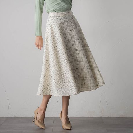 表情豊かなツイード生地を使用した、サーキュラーシルエットのスカート。