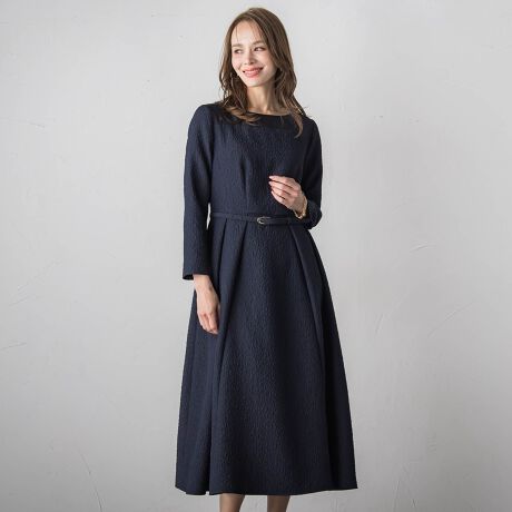 フィット&フレアの美しいシルエットが女性らしさを引き立て、日常から特別なシーンまで幅広く活躍します。