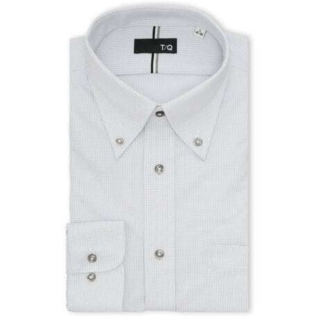 モードな雰囲気が漂う細かい千鳥格子柄です。衿型はアンタイド(ノーネクタイ)でも衿立ちよく収まり、オフィスカジュアルにもぴったりなボタンダウンを採用しています。下前立のデザインテープがアクセントになっています。