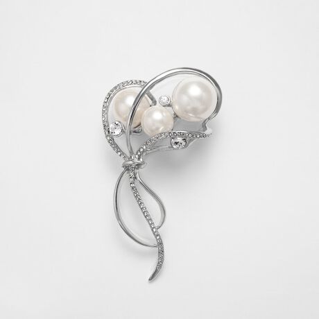 [型番:VBPV8503 UW]貝パールと繊細なカットガラスを贅沢にあしらった華やかなブローチ。 エレガントな流れるラインに大粒の貝パールが上品で、スタイリングのポイントになります。 パールの艶やかさは晴れの席にも華やかさを演出します。付属品:巾着※商品は、品質保持のためビニール製のチャック付き袋にお入れした後、巾着でお包みいたします。※パッケージについては予告なく変更になる場合があります。