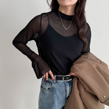シアー感とフレア袖で、レイヤードが映える上品プルオーバー
