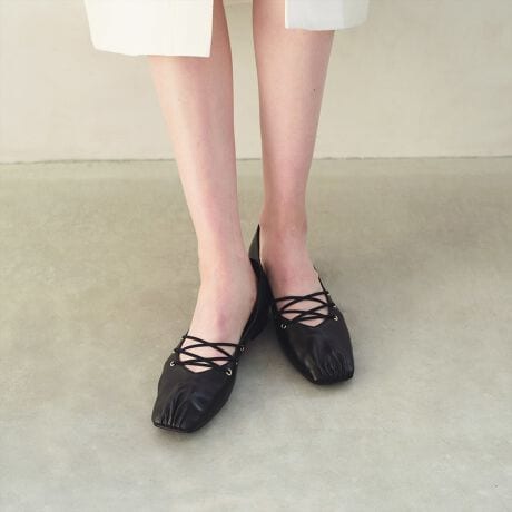 歩きやすさとシルエットの美しさを両立したフラットシューズです。
