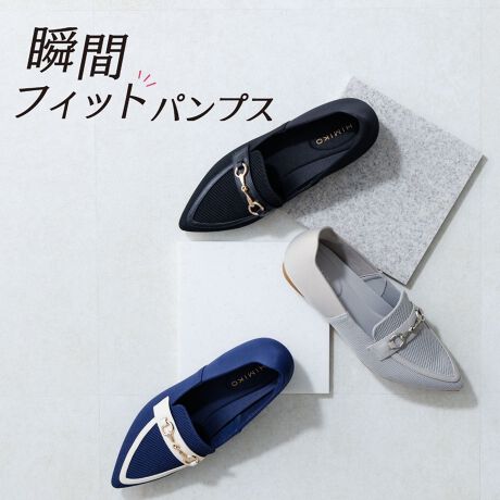 フィット感のあるニット素材と、さっと履けるハンズフリー仕様で、快適さを追求したパンプスが新登場!踵にカップ形状の芯を入れることで、手を使わずに立ったまま簡単に着脱できます。繊細なビットモチーフできちんと感を演出。ブラック、グレーはワンカラー、ネイビーはアイボリーとのバイカラーでさわやかな印象に仕上げました。