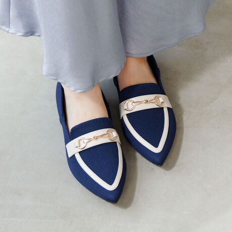 すっきりとしたポインテッドトゥながら窮屈感のない履き心地。ニット素材で通気性も良く、オフィスシーンからデイリー使いまで活躍すること間違いなしの一足。手を使わずに一瞬で履ける、忙しい日常に最適なアイテムです。