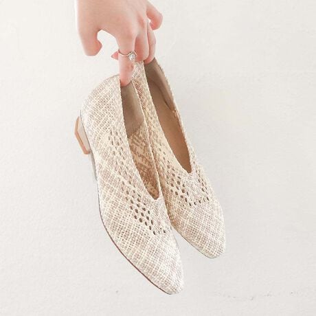 編みメッシュのポインテッドパンプス。