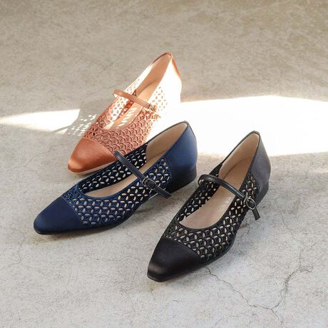 サテンレースストラップパンプス
