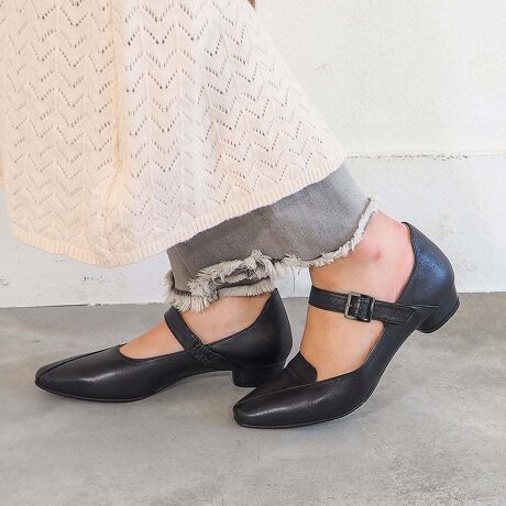 クラシカルなメリージェーンを、今っぽくアップデートしたストラップパンプス。