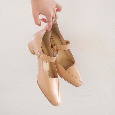 クラシカルなメリージェーンを、今っぽくアップデートしたストラップパンプス。