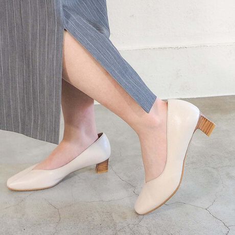 スクエアトゥとVカットで足元をすっきり見せてくれるプレーンパンプス。