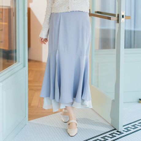 膝辺りの切替から裾にかけてふわりと広がるソフトマーメイドシルエットが、女性らしい揺れ感を演出。