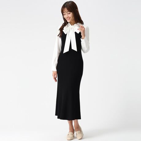 2026春夏新作 タイ付きシャツドッキングニットワンピース
