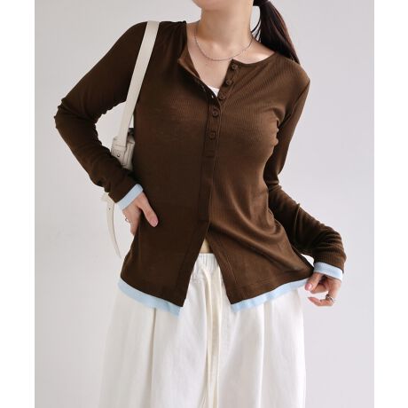 ヘンリーネック バイカラー 長袖 シアー トップス