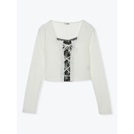 [型番:26560777823]1枚でレイヤード風の着こなしを楽しめるレーストップス。フロントはスピンドルを施しており、ガーリーなムードを高めています。凹凸のあるテレコ素材がフィット感のある着心地を実現。首元にネックレスやチョーカーをプラスしたコーディネートもおすすめです。