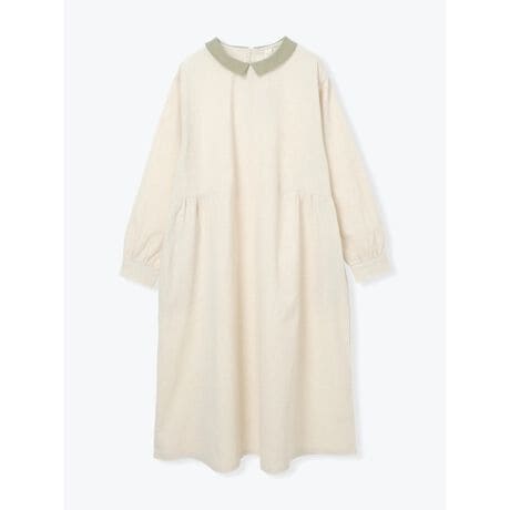 [型番:26410700486]ギャザー切り替えを施すことで立体感のあるシルエットに仕上げたワンピース。配色の衿のデザインがスタイリングのアクセントになります。リネンを含む生地を使用したやさしい着心地がポイント。1枚で休日のお出かけコーデが完成するアイテムです。Hare no hi/ハレノヒ