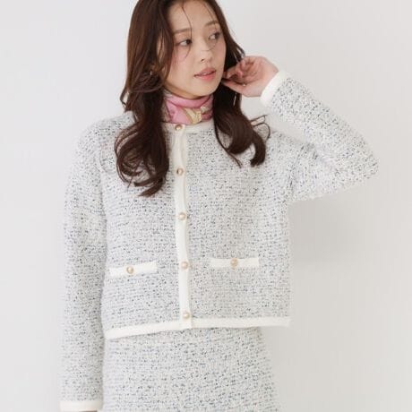 同素材のタイトスカート(品番187-75132)とセットアップで着て頂けます。