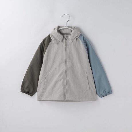 配色がかわいいフード付きシャカシャカブルゾンは、普段はスタンドカラーとしてシンプルに着用でき、必要に応じてフードを取り出してかぶることも可能な多機能デザインです。