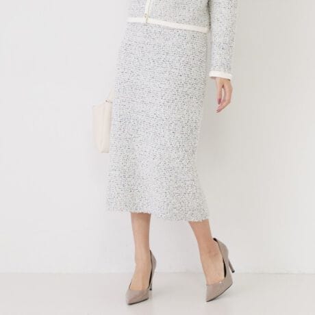 意匠感あるツィード調編地が目を惹くのニットタイトスカート。