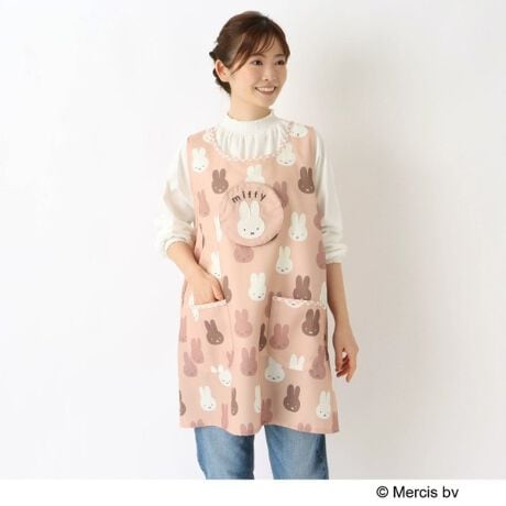 ピンク:ミッフィーのお顔がいっぱいのエプロンです。ポリエステル100%の素材で軽やかなエプロンです。