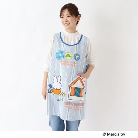 ブルー:ミッフィーのおうちがアップリケのポケットになっているかわいいエプロンです。