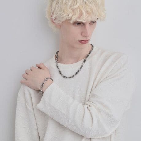 手元に確かな存在感を添える、デザイン性の高いチェーンブレスレット。