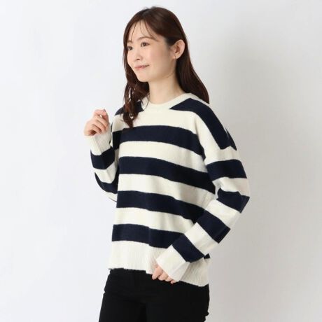 太ピッチのボーダーが目を惹く、ニットトップス。