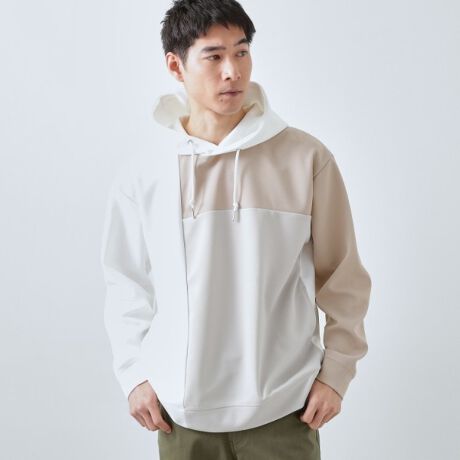前身頃に配色切り替えを施した、デザイン性の高いプルパーカー。