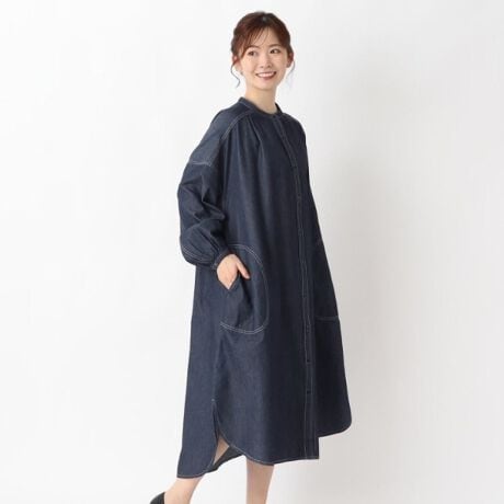 デニム素材のワークシャツワンピース。
