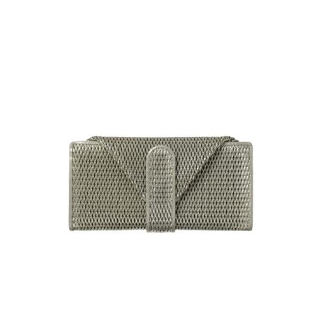 クロム鞣しの牛革にメタリック塗装をし、ダイヤ形の深い型押しを施しています。