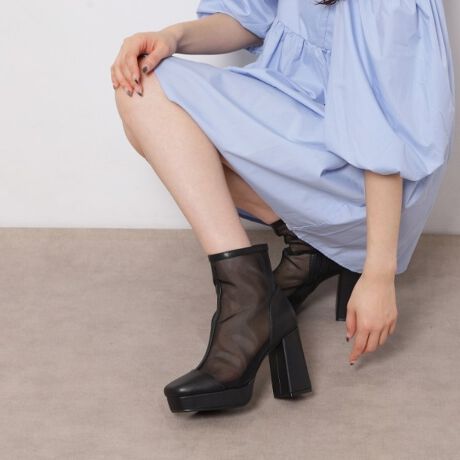 チュールメッシュ素材で抜け感を演出した春待ちショートブーツです。