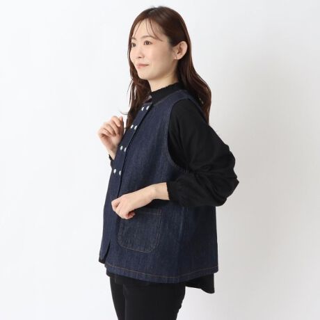 形はしっかりとしたベストでもデニム素材だからかっちりしずぎずこれ一枚羽織るだけでサマ見えするアイテムです。