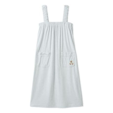 水分を素早く吸収してさらっと着用していただける、柔らかなパイル素材のワンピースです。胸元はゴム入り、肩紐は取り外し可能で、ベアトップのように着用することもできる2way仕様。毎日のお風呂上がりにはもちろん、旅行や海やプールなどのレジャーシーンにも活用していただけます。色はピケらしい柔らかで清潔感のあるブルーで、ポケットにガウンを着たベアのワンポイント刺繍を入れました。お好みのルームウェアや雑貨と組み合わせたり、新生活へ向けたギフトにもおすすめのアイテムです。