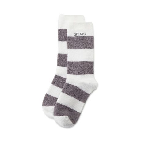 軽やかな春の色合いで仕上げた、なめらかな薄手ニット‘スムーズィー’素材の定番2色ボーダーシリーズです。ワンポイントでロゴ刺繍をあしらったベーシックなソックス。今季のボーダー柄は、春らしく彩度の高い華やかな色合いでご用意しました。色はピンク、オレンジ、ブルー、ダークグレーの4色展開。同シリーズのルームウェアを合わせたり、ギフトにもおすすめのアイテムです。