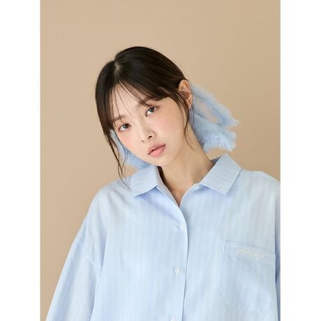 フリルをたっぷりとあしらった春らしいチュール素材のシュシュです。まとめ髪につけるとふんわりとボリュームが出て、華やかな印象に。透け感があるので、重さは感じさせないのがポイントです。ワンポイントでゴールドのロゴ入りチャームをあしらいました。色はピンク、ブルー、グレーの3色展開。同シリーズのポーチと組み合わせてギフトにもおすすめです。
