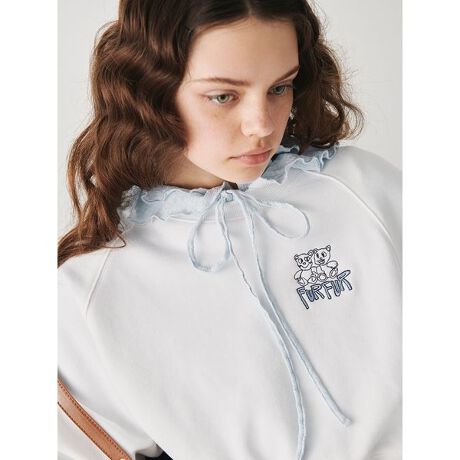 FURFURオリジナルキャラクターの刺繍をポイントにしたスウェット。シルエットはゆったりとしたラグランスリーブ、着丈はショート丈でハイウエストボトムなどにも合わせやすく、様々なボトムと相性良く着こなせるアイテムです。