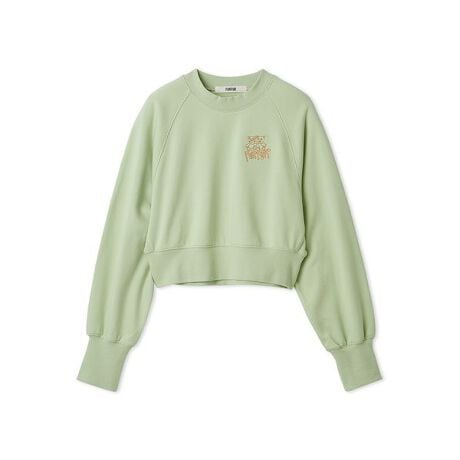 FURFURオリジナルキャラクターの刺繍をポイントにしたスウェット。シルエットはゆったりとしたラグランスリーブ、着丈はショート丈でハイウエストボトムなどにも合わせやすく、様々なボトムと相性良く着こなせるアイテムです。