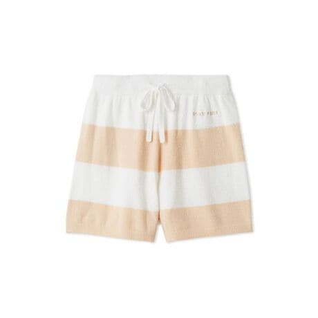 軽やかな春の色合いに心弾む、なめらかな薄手ニット‘スムーズィー’素材の定番2色ボーダーシリーズです。左腰にロゴ刺繍をあしらった、これから暖かくなる季節に重宝するショートパンツ。今季のボーダー柄は、春らしく彩度の高い華やかな色合いでご用意しました。ウエストに紐入りで、右後ろにポケットも付いています。色はピンク、オレンジ、ブルー、チャコールグレーの4色展開。同シリーズのパーカや雑貨を合わせたり、色違いのHOMMEサイズとペア・コーディネートするのもおすすめです。