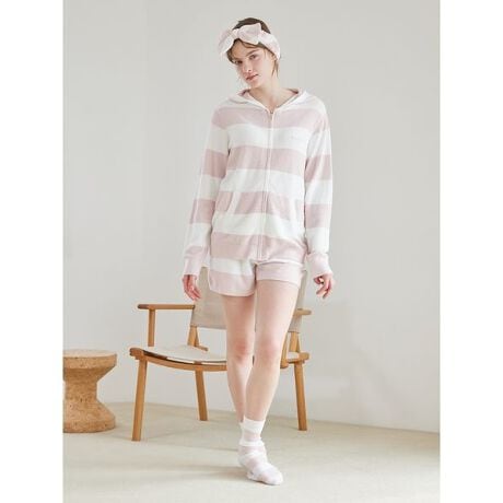 軽やかな春の色合いに心弾む、なめらかな薄手ニット‘スムーズィー’素材の定番2色ボーダーシリーズです。左腰にロゴ刺繍をあしらった、これから暖かくなる季節に重宝するショートパンツ。今季のボーダー柄は、春らしく彩度の高い華やかな色合いでご用意しました。ウエストに紐入りで、右後ろにポケットも付いています。色はピンク、オレンジ、ブルー、チャコールグレーの4色展開。同シリーズのパーカや雑貨を合わせたり、色違いのHOMMEサイズとペア・コーディネートするのもおすすめです。