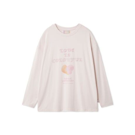 コレクションテーマである「LOVE IS COLORFUL」のロゴに、和菓子をイメージしたグラフィックを組み合わせました。色はイエローを効かせたオフホワイトと、ピンクの2色展開。同シリーズのロングパンツやカーディガンと合わせたり、メンズサイズとのペア・コーディネートもお楽しみいただけます。