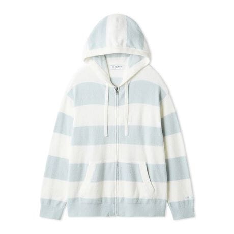 軽やかな春の色合いで仕上げた、なめらかな薄手ニット‘スムーズィー’素材の定番2色ボーダーシリーズです。左袖にロゴ刺繍を入れたHOMMEサイズのジップパーカは、1枚でも羽織りとしても重宝するアイテム。春から初夏にかけて合わせやすいカラーリングを意識しました。フロントに使いやすいポケットも付いています。色は爽やかな明るいブルーと、涼しげで落ち着いたチャコールグレーの2色展開。同シリーズのボトムやソックスを合わせたり、色違いのLADIES’サイズとペア・コーディネートするのもおすすめです。