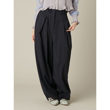 シワになりくく、さらっとした肌触りのきれいめな素材を使用。形はトレンドの太めカーブシルエット。ヒップや足のラインをカバーし、脇から折ったようなウエストの内向きタックがウエストをより細く見せてくれるので、スタイルアップが叶うアイテムです。後ろゴムでストレスフリーな履き心地なのもポイント。ボリュームのあるシルエットなので、コンパクトなトップスを合わせるのがおすすめのコーディネートです。合わせやすいベーシックカラーのBEG・NVYと春の差し色にぴったりな明るめのPNKの3色展開です。