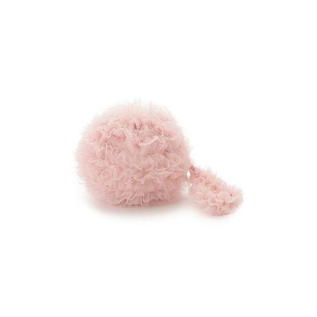 まるでふわふわの小動物のような可愛らしさ。チュールのフリルをたっぷりとあしらった、コロンとしたフォルムのポーチです。ファスナー式の本体はマチありで、内ポケットも充実。ハンドルが付いているのでコスメや小さなお財布などを入れてちょっとした持ち運びにも便利です。ファスナーの引き手にはゴールドのロゴ入りチャームをあしらいました。色はピンク、ブルー、グレーの3色展開。同シリーズのシュシュと組み合わせてギフトにもおすすめです。