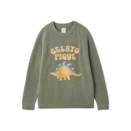 カラフルなダイナソーをモチーフにした、‘エアリーモコ’素材のニットシリーズです。フロントにモコモコとしたダイナソーを大きく描き、POPなロゴジャガードを添えた遊び心のあるプルオーバー。ラグランスリーブのゆったりとした着心地です。ボディカラーは青いティラノサウルスを描いたクリームと、ピンクのブラキオサウルスを描いたブルー、イエローのステゴサウルスを描いたカーキの全3色。同シリーズのショートパンツや、ダイナソー柄のカットソーアイテムと合わせてお楽しみください。