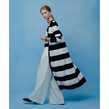 さらりとした肌触りのカノコ編みで、ワンピースにもなるロングカーディガンをお作りしました。バサッと羽織って端境のコート代わりにもなります。リラックスした雰囲気ながら、度目の詰まった編地で上質感を際立たせています。
