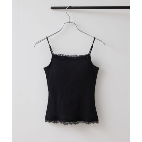 フェミニンなレースが胸元と裾についたデザインキャミソール。