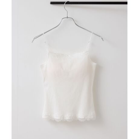 フェミニンなレースが胸元と裾についたデザインキャミソール。
